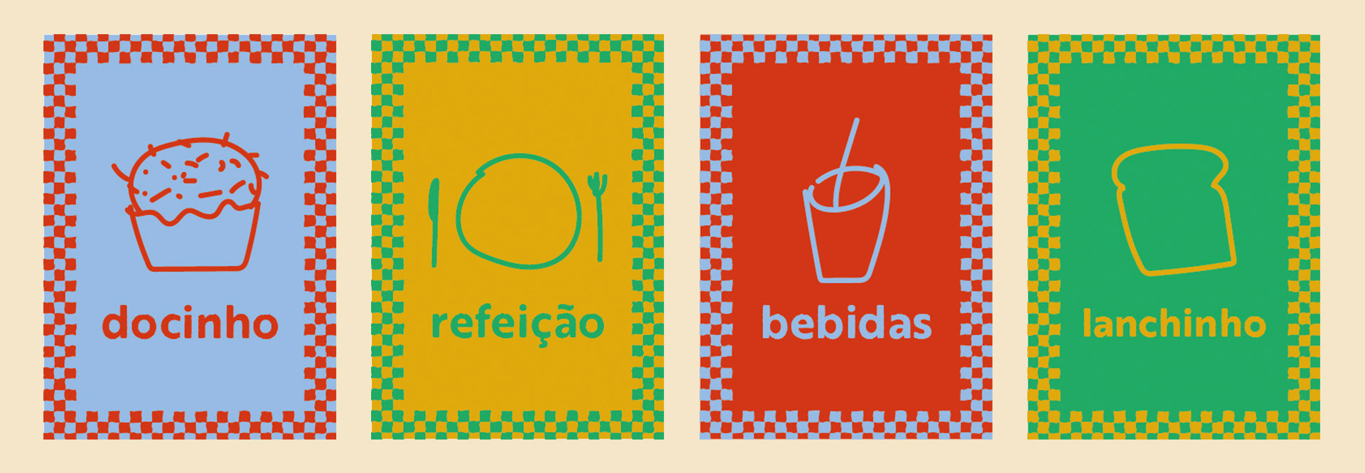 Desenvolvi várias ilustrações de alimentos e bebidas para o jogo de cartas 'EMPRATE', jogo educacional para ensinar crianças com diabetes a controlar suas refeições de forma saudável. As ilustrações se dividem em 4 grandes categorias: docinho, refeição, bebidas e lanchinho - todas muito coloridas e bem alegres!